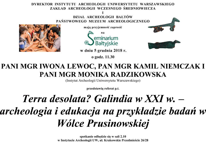 25 kwietnia 2024 o godz. 11.30, Wydział Archeologii Uniwersytetu Warszawskiego, ul. Krakowskie Przedmieście 26/28.
