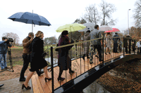 Pierwsi goście przechodzą przez mostek