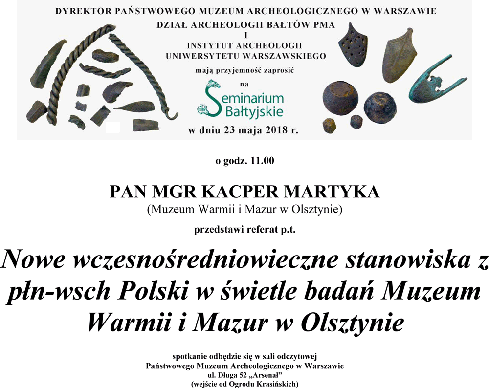 25 kwietnia 2024 o godz. 11.30, Wydział Archeologii Uniwersytetu Warszawskiego, ul. Krakowskie Przedmieście 26/28.