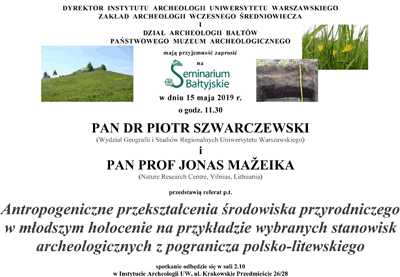 14 marca 2024 o godz. 11.30, Wydział Archeologii Uniwersytetu Warszawskiego, ul. Krakowskie Przedmieście 26/28.