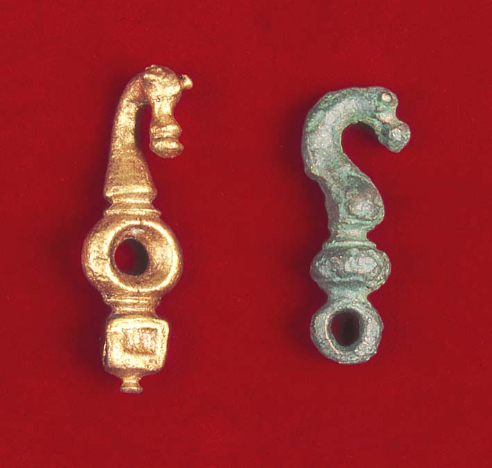 Celtyckie brązowe klamry do pasa w kształcie głów końskich. Świerkówiec i Wszedzeń, pow. Mogilno.