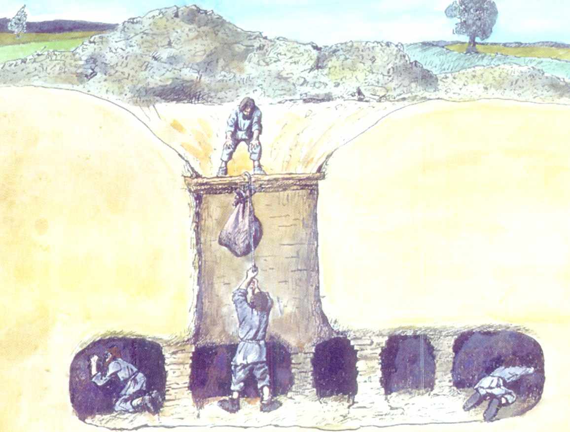 4 m można już było drążyć niewielkie 2 metrowe nisze przy dnie jam wydobywczych.