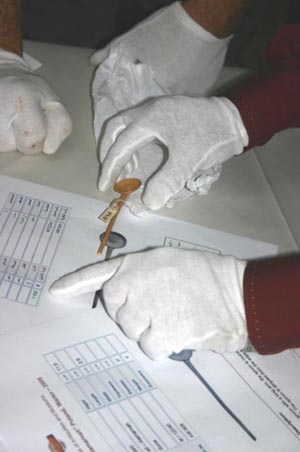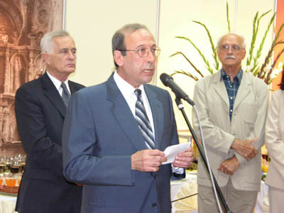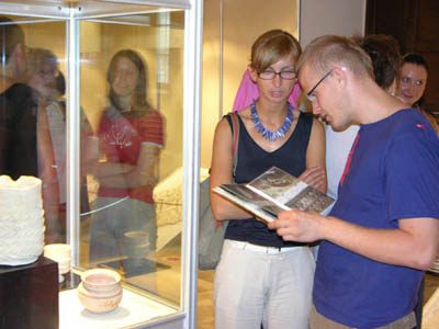 | od lewej Ewa Chrzanowska - organizator wystawy, Krystyna Polaczek (Centrum Archeologii Śródziemnomorskiej UW) i prof. Önhan Tunca | Tomasz Waliszewski ( Centrum Archeologii Śródziemnomorskiej UW) - organizator wystawy | |