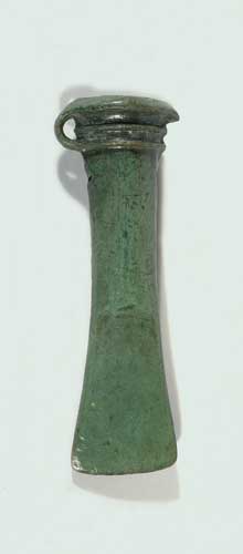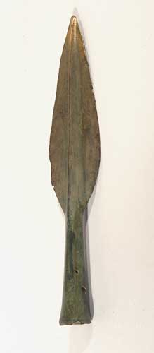 Brązowy grot oszczepu z Karabczyjowa; siekierka brązowa z Zawadyniec, dawny powiat Kamieniec Podolski. Okres przedscytyjski. Dary Franciszka Pułaskiego