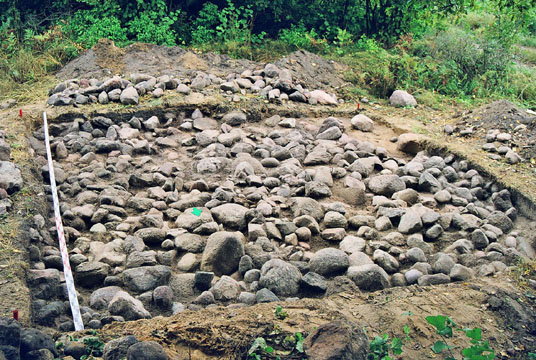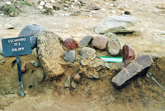 oznaczono na dawnej powierzchni gruntu stertą kamieni (Fot. W. Orliński)