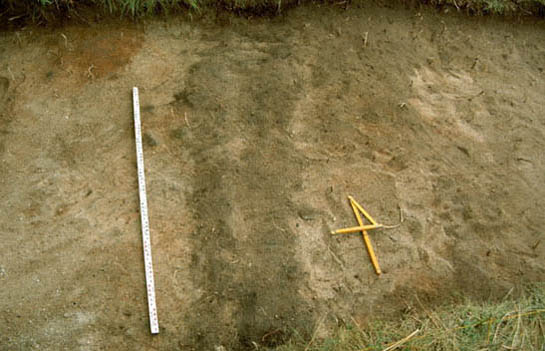 będącej pozostałością po wyrównywaniu terenu. Natomiast brak w wale przemieszanych
