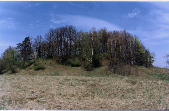 jest na niewielkim płaskowyżu u stóp grodziska i na wschodnim stoku wzgórza,