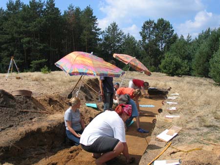 stanowisku odkrywamy również jamy, których piaszczyste wypełniska nasycone