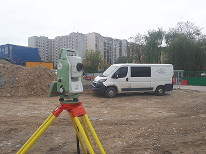 | Tachymetr Leica w trakcie nadzoru archeologicznego przy budowie metra w Warszawie |